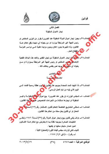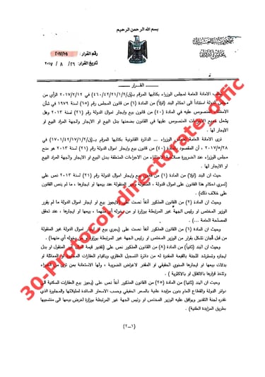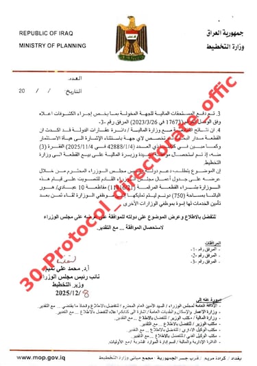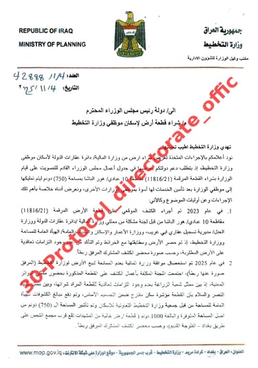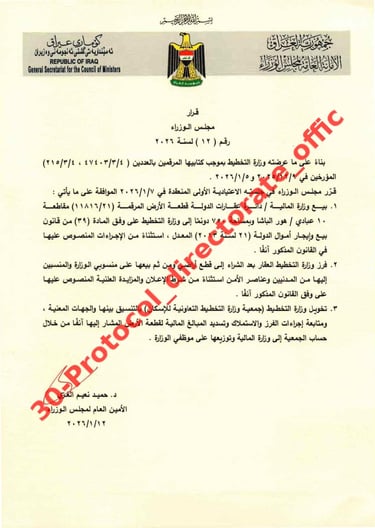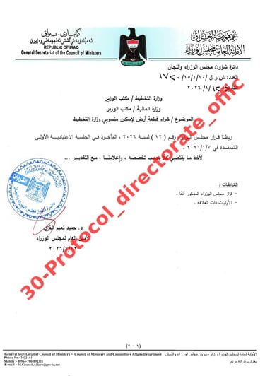 تصويت مجلس الوزراء على شراء قطعة الارض في ابو غريب
